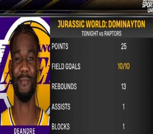 艾顿10中10砍25分13板湖人击退猛龙詹姆斯24+7东契奇25+7